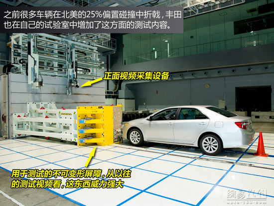 此前北美的多次25%偏置碰撞都让很多车型落马,为了这方面的试验需求,丰田也在其内部的测试场内加装了偏置碰撞的设备,进行针对性的试验数据搜集(相信其他厂商也在做同样的工作,未来的25%偏置成绩有望整体提升)。