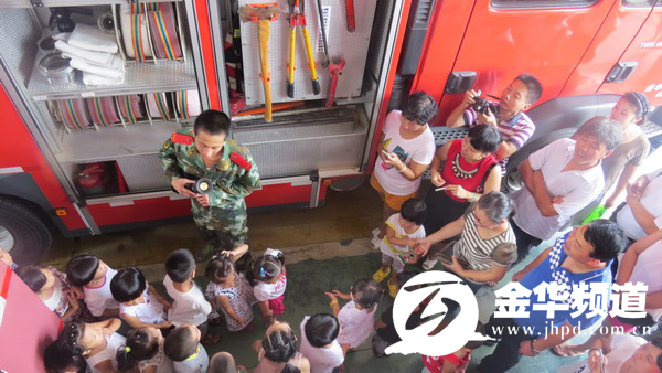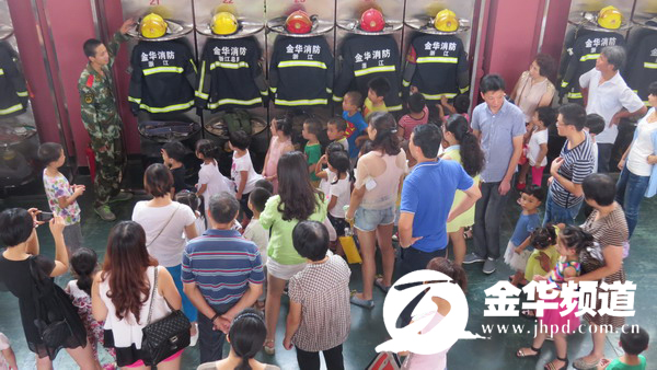 浙江在线金华频道2014年8月29日讯(通讯员 邹宁浩)为进一步提高儿童的消防安全意识,增强儿童抵御火灾和自防自救的能力。8月27日下午,浦江消防大队邀请天地幼儿园的60位小朋友与家长在老师走进红门开展参观体验活动。