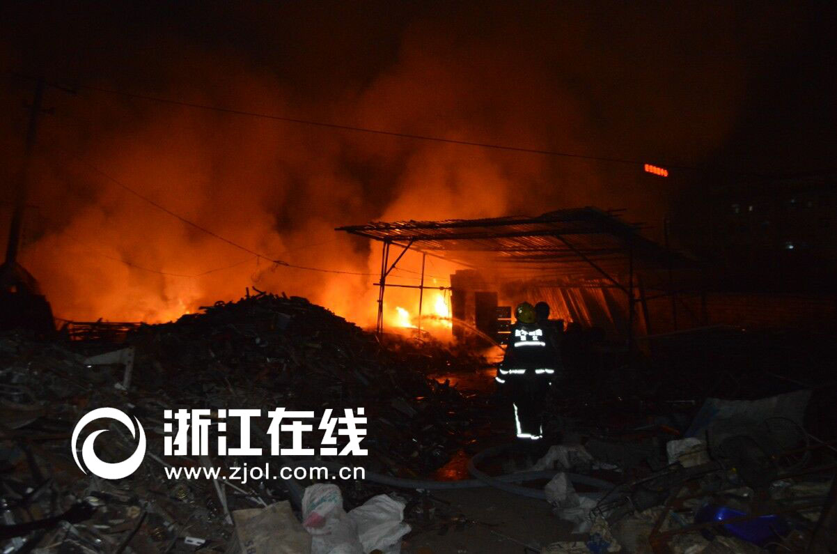 浙江在线金华频道1月26日讯(通讯员 方卫东)1月25日晚19时05分,秋滨八达路沈天田村一废品收购站突发火灾。废品收购站内堆放有大量的泡沫、塑料制品等易燃物,且火势较为迅猛,情况十分紧急。接到报警后,江南大队迅速出动赶赴现场实施救援。