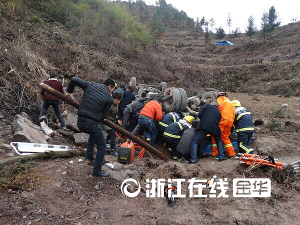 浙江在线金华频道3月2日讯(通讯员 李曼宇)3月1日中午11时15分,磐安消防大队接到报警称安文前往窈川方向一岔路口有一货车侧翻,车上一对兄弟被困,情况十分危急。接到报警后,磐安大队迅速调派2车和10名消防官兵赶赴现场,实施救援。