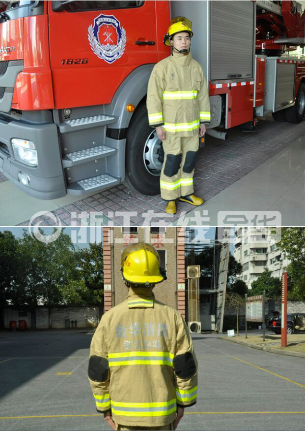 No.2麦穗色——消防灭火服(战斗服)。此款为藏青色战斗服的改进版,在防水性能、穿着舒适度、灵活度等方面有较大提升。
