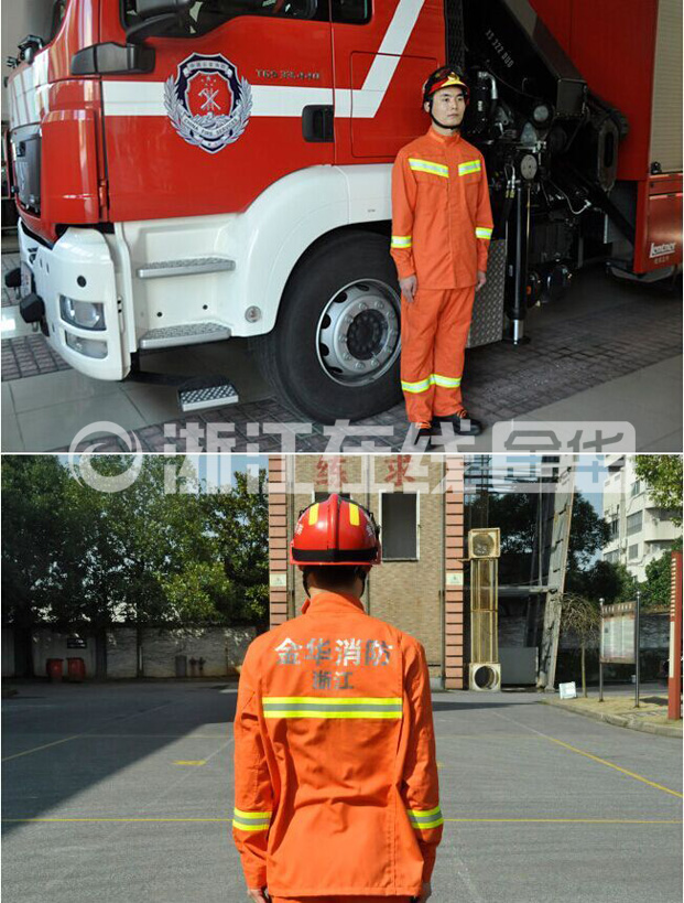 No.3橙色——消防抢险救援服。消防抢险救援服是保护消防员及各类救助人员除头部、颈部、手部、脚部外身体的防护服装,必须上衣下裤同时穿着使用,用于建筑物倒塌、狭窄空间及攀登救援现场的身体防护,具有阻燃、防静电、耐磨、牢固、透气吸汗、轻便、抗拉力强、穿着舒适,颜色及标识醒目等优点。