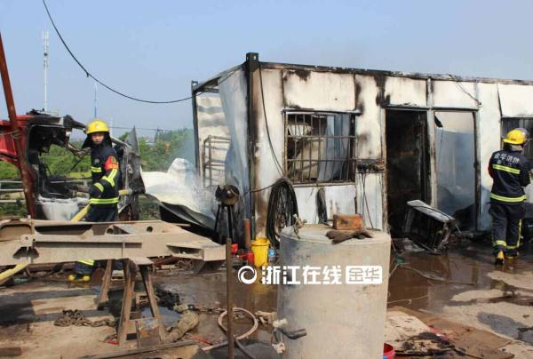 浙江在线金华频道4月30日讯(记者 陈祎村 通讯员 吴姗姗)4月29日下午14时50分,位于330国道丁村加油站附近的一集装箱出租房着火,幸未造成人员伤亡。