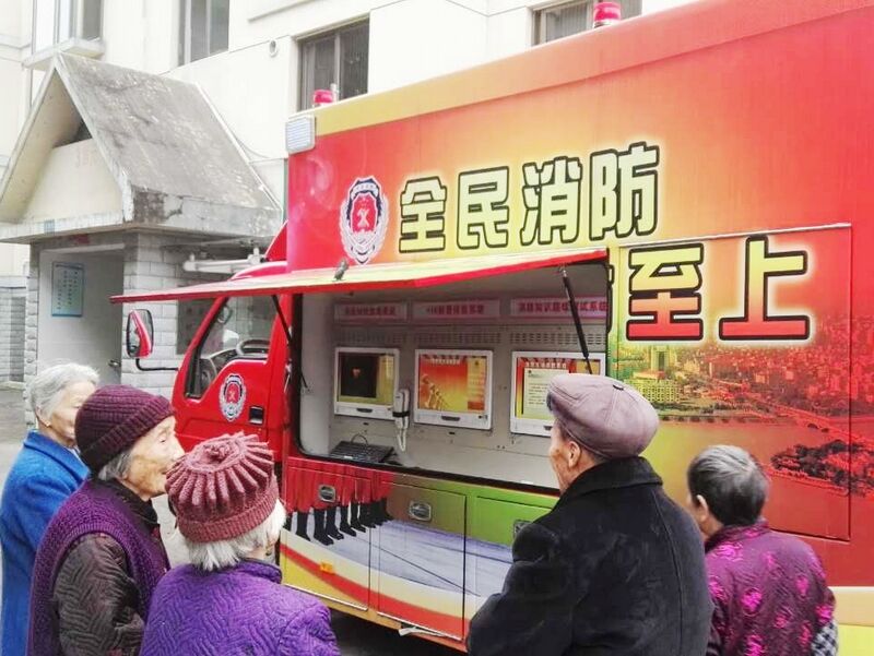 大队宣传人员充分考虑农村多空巢老人的特点,利用宣传车的LED大屏幕为村民播放逃生技能、消防安全常识、火灾案例短片等内容。村民纷纷驻足观看,大队宣传人员向村民耐心的解释发生火灾时应如何逃生自救,并现场演示灭火器的使用方法。现场氛围非常火热,吸引了一拨拨村民前来参观学习。