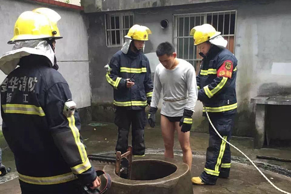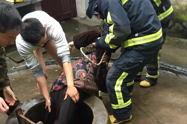 1月11日14时7分,东阳大队指挥中心接到报警称:位于市区新南路螺丝王后面有一名老人坠井,请求救援。接到报警后,东阳大队立即调派吴宁中队1车8人火速赶往现场救援。
