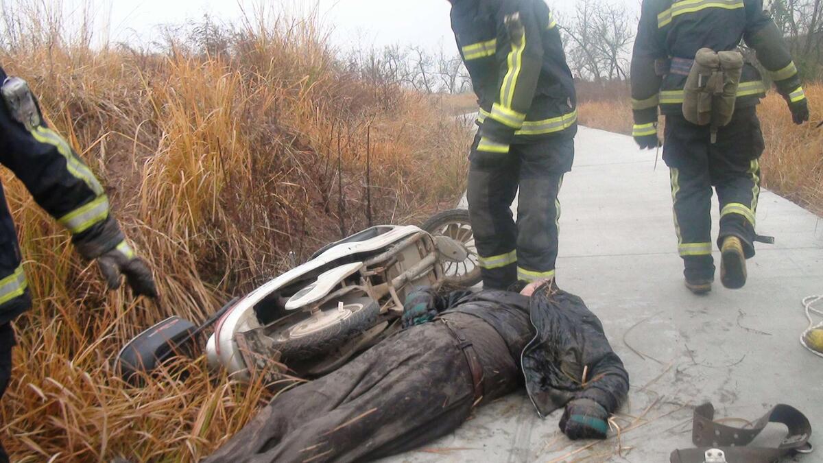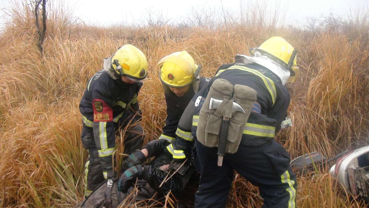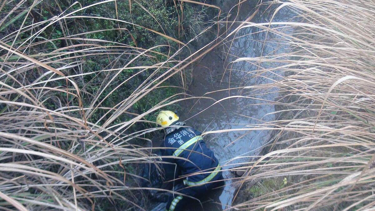 到达现场后,消防官兵发现一辆银白色电瓶车倒在樟村往仙庄方向一小桥边的斜坡上。不远处的一条约莫四五米深的渠道里,一名身着黑色棉衣的男子背部朝上,头部卡在泥水中的淤泥里,一动不动。根据现场状况,指挥员立即下达作战命令:一组官兵负责疏散周围围观村民,避免造成二次伤害;另一组官兵负责上下配合,争取第一时间救出老汉。由于渠道附近杂草丛生,且距离地面有一定的距离。消防官兵不得不使用绳索将老汉腰部捆住,一名官兵从渠道内将老汉托起,另一名官兵用力从渠道中将老汉拉上陆地。二十分钟后,老汉被成功救上岸。经现场医护人员确认,老汉已无生命迹象。