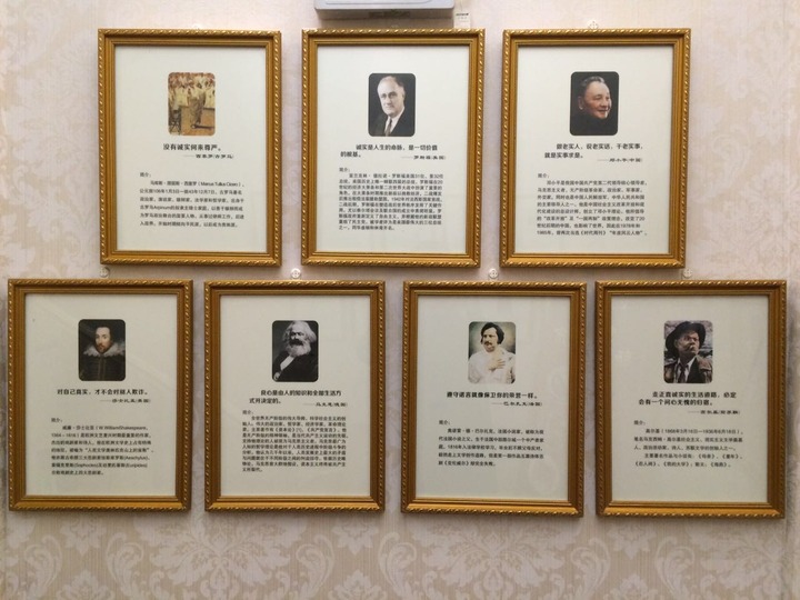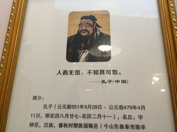 瞧这满墙的画框,上面全是名人名言,主题就是俩字——诚信。