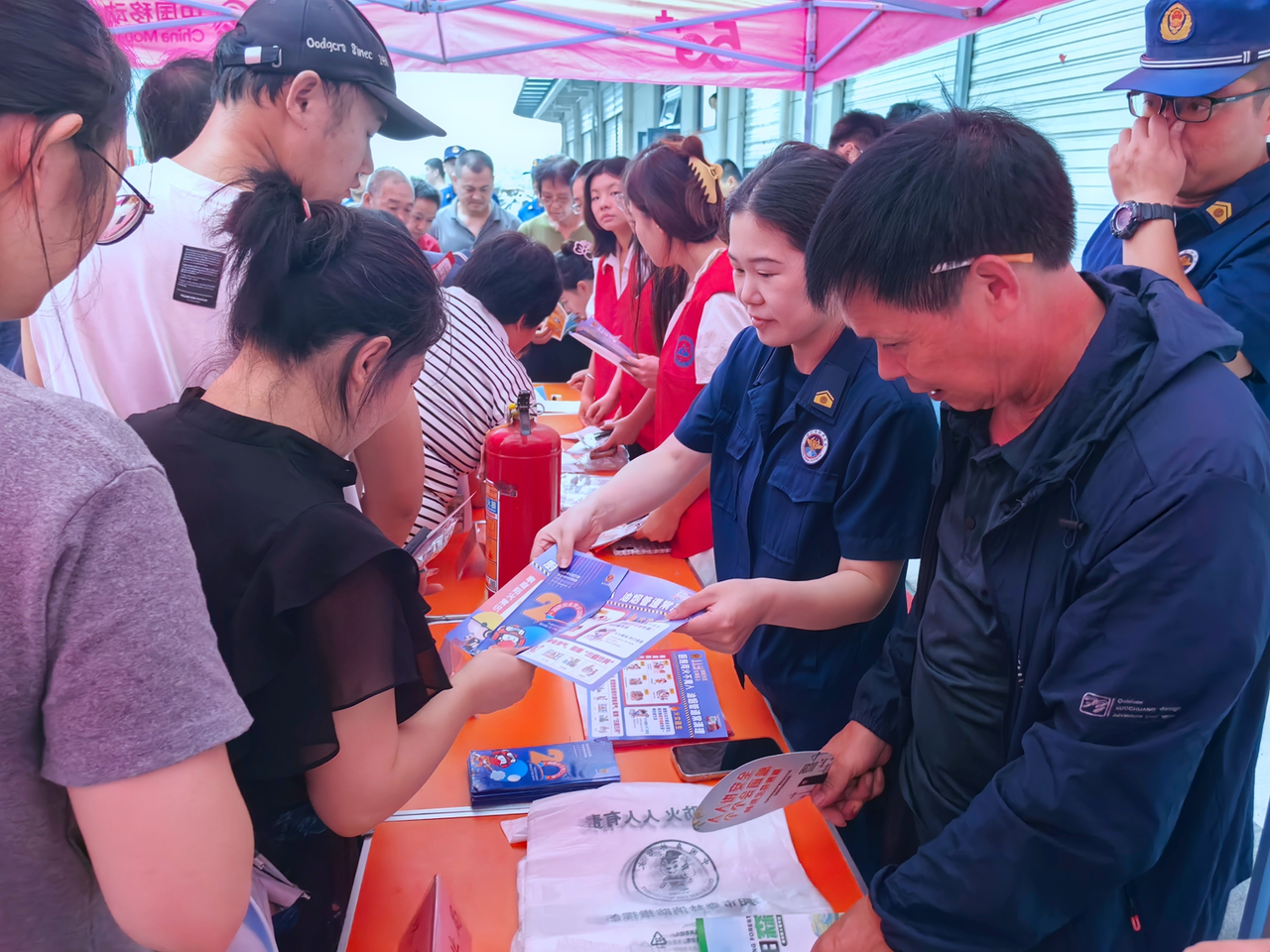 期间,大队发动宣传人员、专职消防队队员、广厦大学消防志愿者、社会工作者,通过设立咨询台、发放宣传资料、展示消防器材等方式,向群众讲解消防安全知识,为群众答疑解惑,引导群众自主学习消防安全知识。