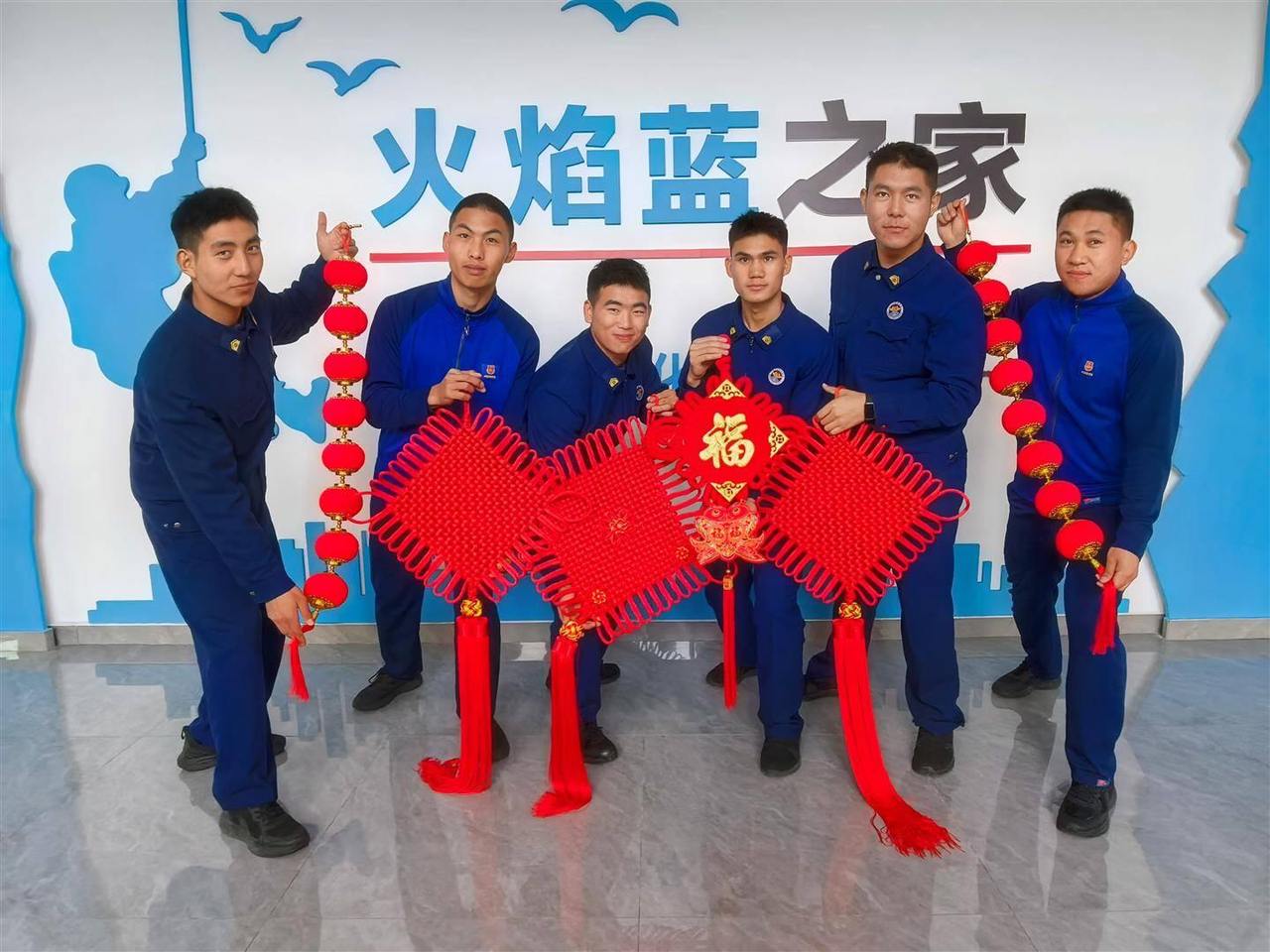 2月11日是腊月二十四,南方的小年夜,保机老也和其他消防员拿出早已准备好的红灯笼、中国结和一串串福字,把三楼的活动室布置得热闹喜庆。